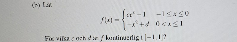 För vilka c och d är f kontinuerlig i ?