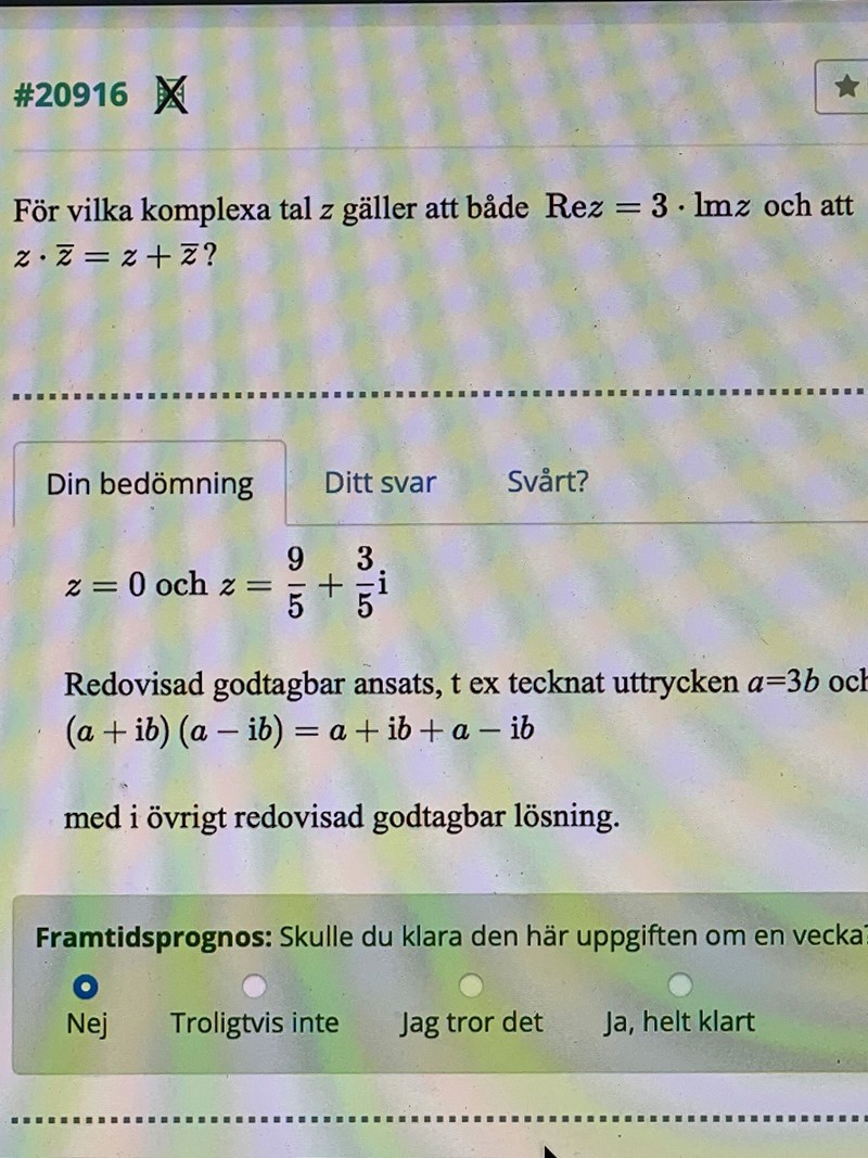 Ta fram uttryck för , Re , Im och sätt upp de samband du fått givna.