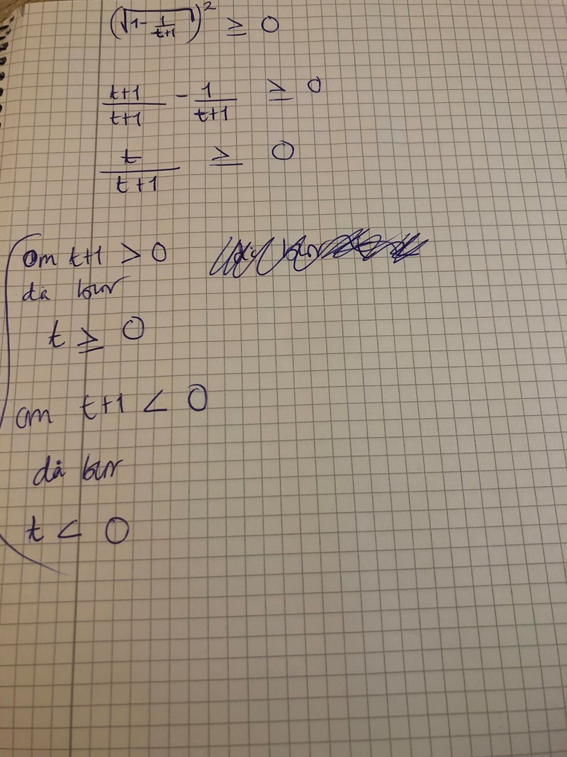 Men för tal mindre än t=-1 , t ex t=-2 så får vi negativt i nämnaren och hela bråket blir då positivt.