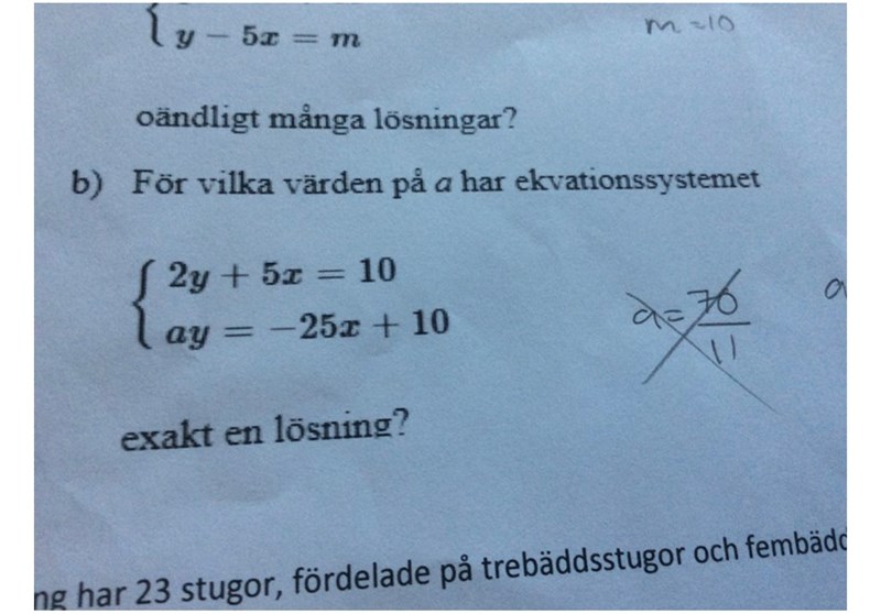 För vilka värden på a har ekvationssystemet exakt en lösning