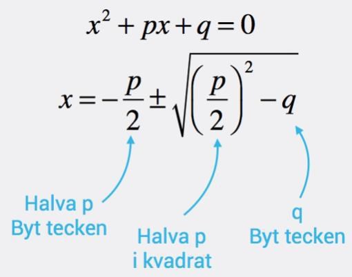 Sedan förstår jag heller inte, ska jag inte ta diskriminanten och dela med två precis som på vänstra sidan?