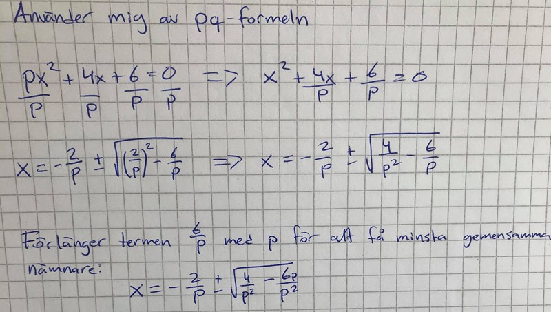 För vilka värden på p saknar ekvationen nedan reella lösningar?