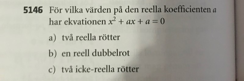 För vilka världen på den reella koefficient a har ekvationen..... (A-nivå fråga)