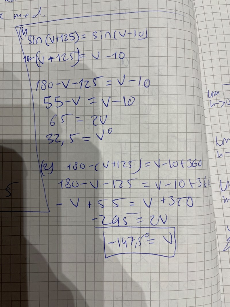 För vilka vinkar gäller att sin(v+125)=sin(v-10)