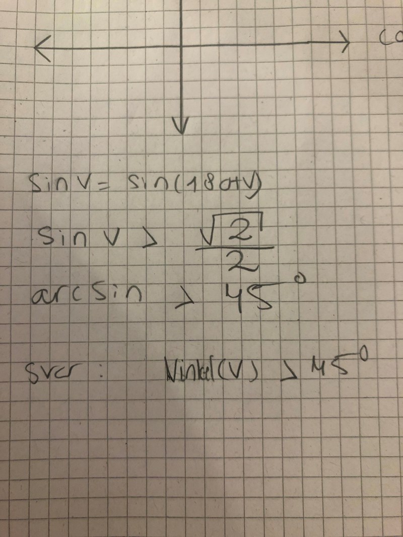 för vilka vinklar i intervallet 0<v<360 gäller b) sin v> roten ur 2 dividerat med 2 OCH cos v< roten ur 3 dividerat med 2 c) sin v< -sin 400 grader. Uppskattar hjälpen! Är helt paff på denna fråga.