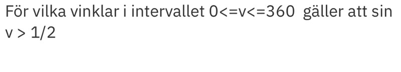Olikheten sin(v) > 1/2 kan alltså representeras av alla punkter på enhetscirkeln vars vertikala koordinat är större än 1/2.