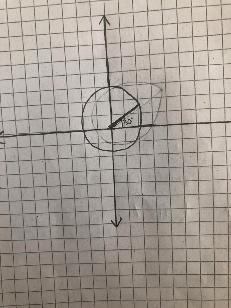 Det går inte att ladda upp en bild. Men jag har ritat en enhetscirkel med radie 1 och jag har även ritat en horisontell linje där y=1/2