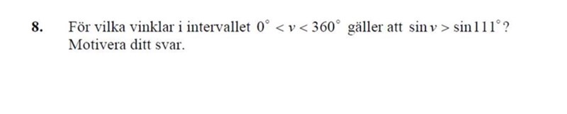 Nu har du markerat vinkeln 111o - bra! Markera nu linjen y = sin(111o) och markera vilken del av enhetscirkeln som ligger ovanför linjen.