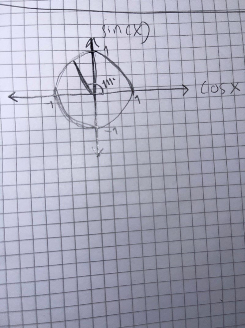 Börja med att rita upp enhetscirkeln och en linje som markerar Y = sin 111 grader. Lägg upp bilden här.