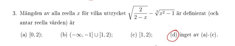 När det gäller det andra deluttrycket tänker jag såhär: eftersom vi har med tredje roten att göra, så får det under tecknet vara negativt. Så det uttrycket är definerat för alla x.