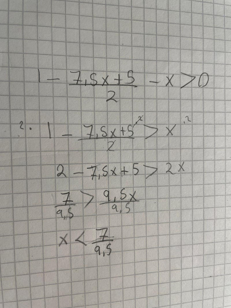 x<7/9,5 betyder ju att x är mindre än 7/9,5 vilket behövs inte vara noll? Det kan va mindre än de där värdet men hur vet du att det är mindre än noll?