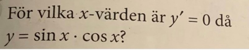 Måste man kunna produktregeln för att lösa den här frågan? Kedjeregeln funkar väl inte för vi har ingen inre funktion. Utan enbart en ”yttre”