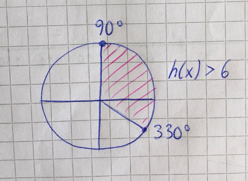 Jag tycker inte att det ärenhetscirkeln sm är det bästa verktyget för att se när h(x) ä rstörre eller mindre än 6. Jag skulle räkna som som jag beskrev för att ta fram var f(x)=6 och sedan rita upp en sinuskurva, ptecis som du gjorde längre upp i tråden. Enhetscirkeln är jättebra, men inte till allt.