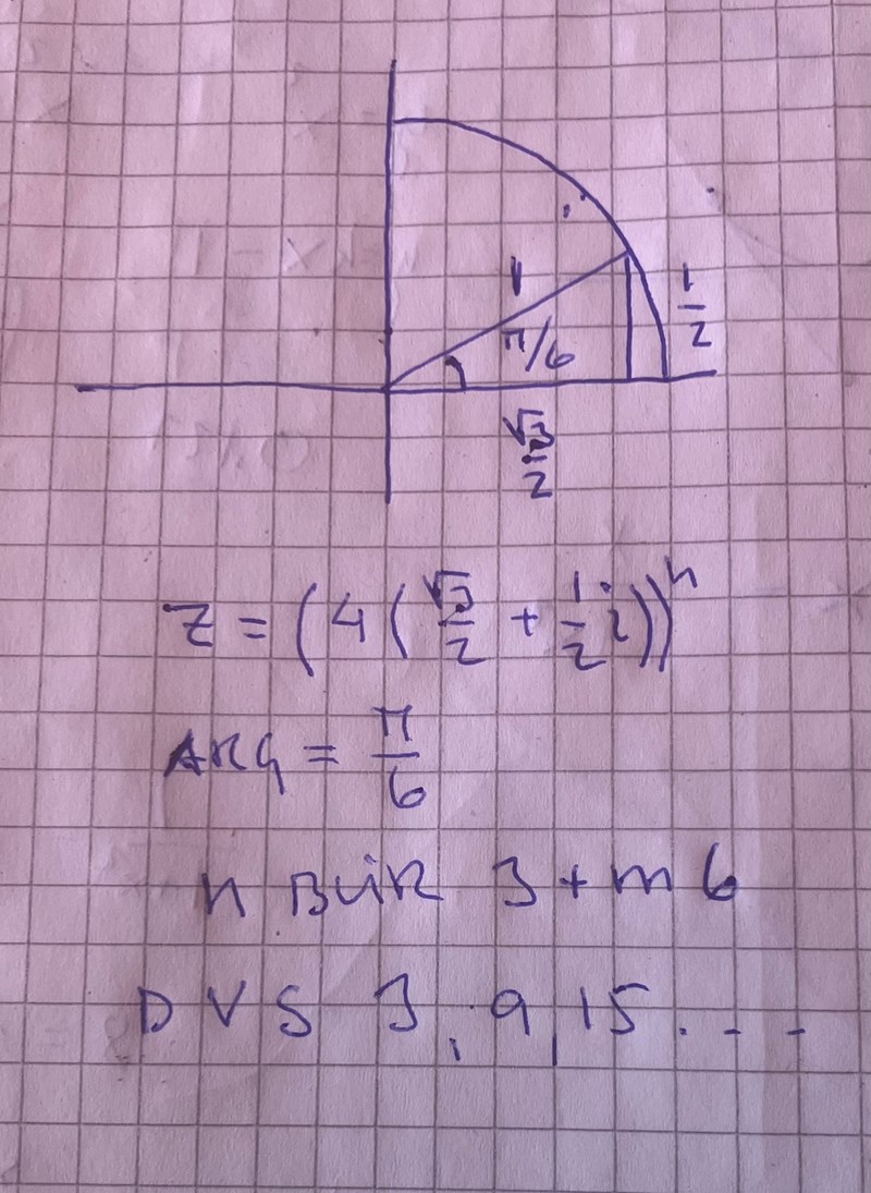 Är inte arg(z)=30 grader eller pi/6 (radianer) ?