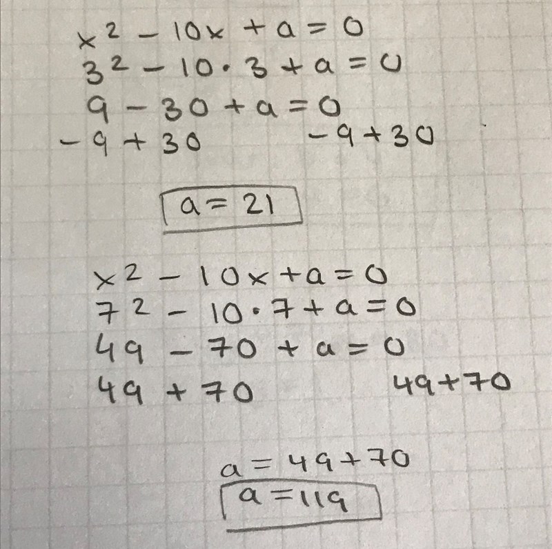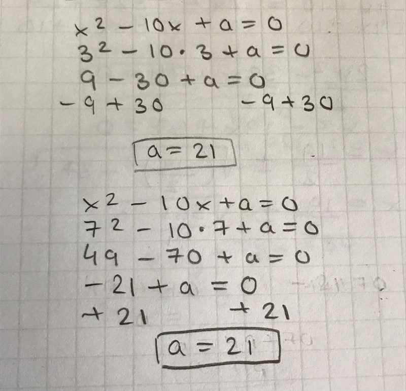 Vad är det du har gjort på raden under 49-70+a = 0?