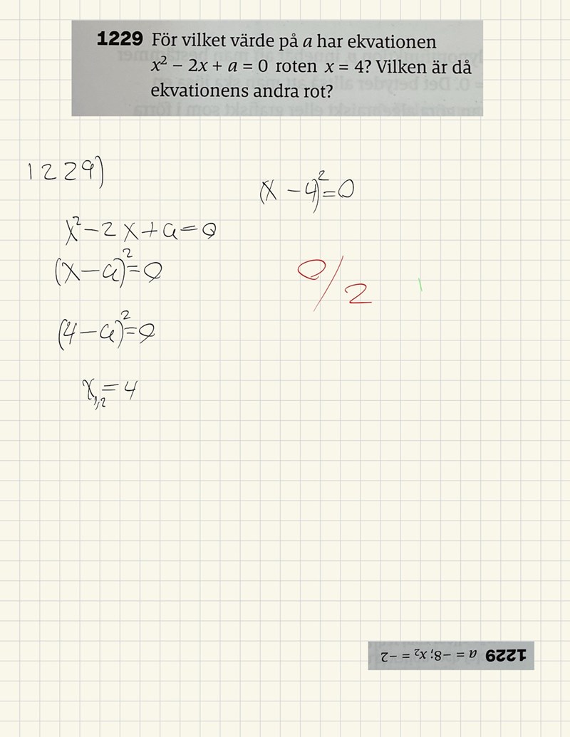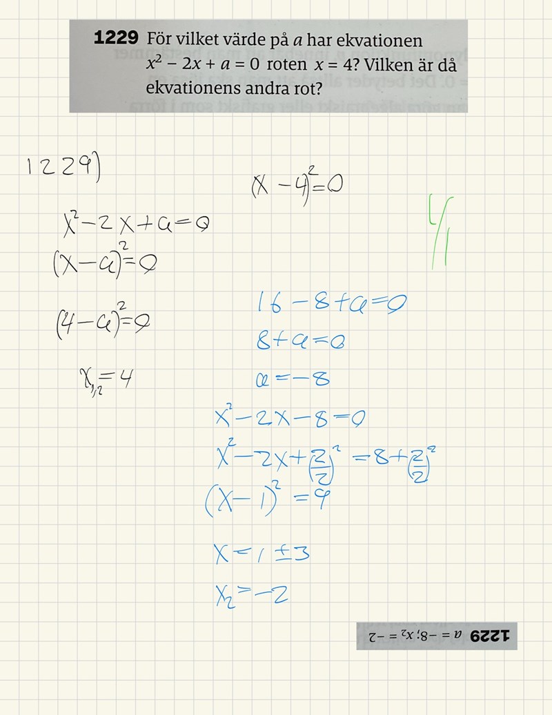Kan du gå vidare nu och beräkna a och den andra roten (dvs en annan x som också uppfyller ekvationen)?