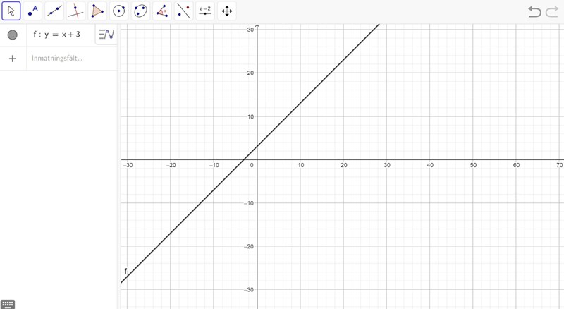 Rita andra linjen också med en glidare a. Låt a variera mellan -6 och 3 och observera skärningspunkten. Var ligger den?