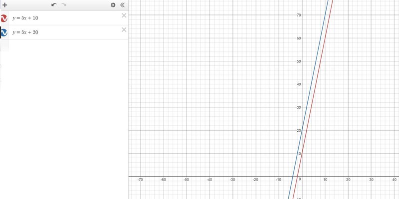 Detta är andra linjen. Titta på linjernas lutning. För vilken lutning har de ingen skärningspunkt?