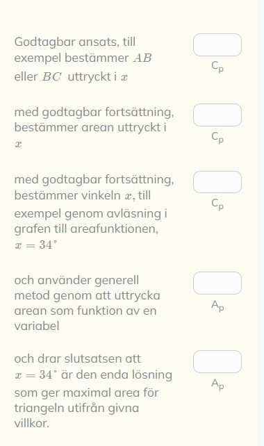 Och jag tänker att eftersom en sida har en bestämd längd är det höjden som avgör hur stor arean blir. Är jag på rätt spår, om så hur kommer jag vidare?