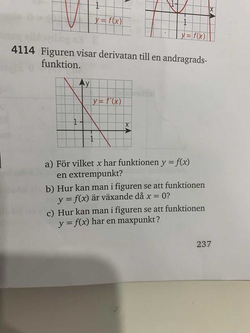 För vilket x har funktionen y=f(x) en extrempunkt?