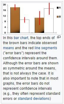 Errorbars borde representera konfidensintervall och kan alltså vara värt att läsa om dem https://en.wikipedia.org/wiki/Confidence_interval