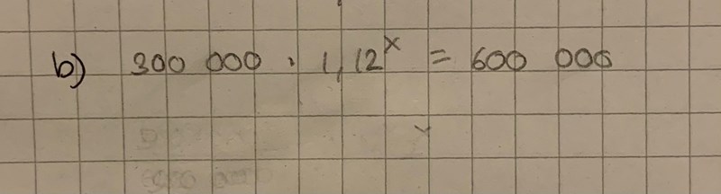 Jag har ställt upp en ekvation för problemet men vet sedan inte hur jag ska gå tillväga. Jag uppskattar all form av hjälp! Tack på förhand! (Nedan kan ni även se hur jag har på börjat min uträkning)