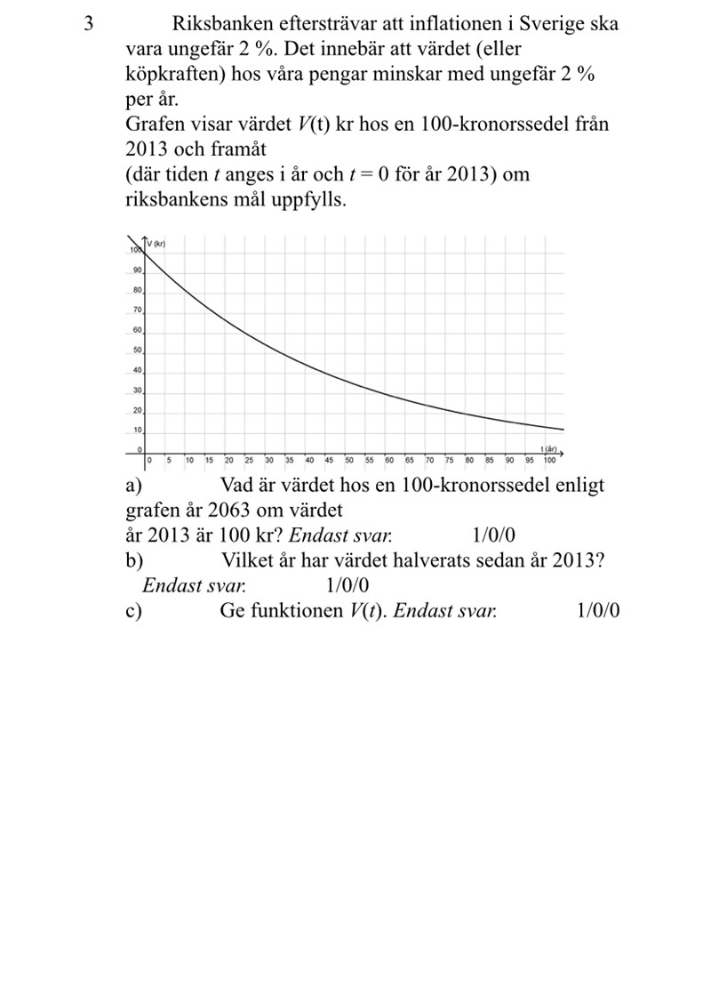 På a skulle du titta vad värdet var år 2063 då värdet var  100 kr år 2013 d.v.s efter 50 år då 2063-2013 = 50 år