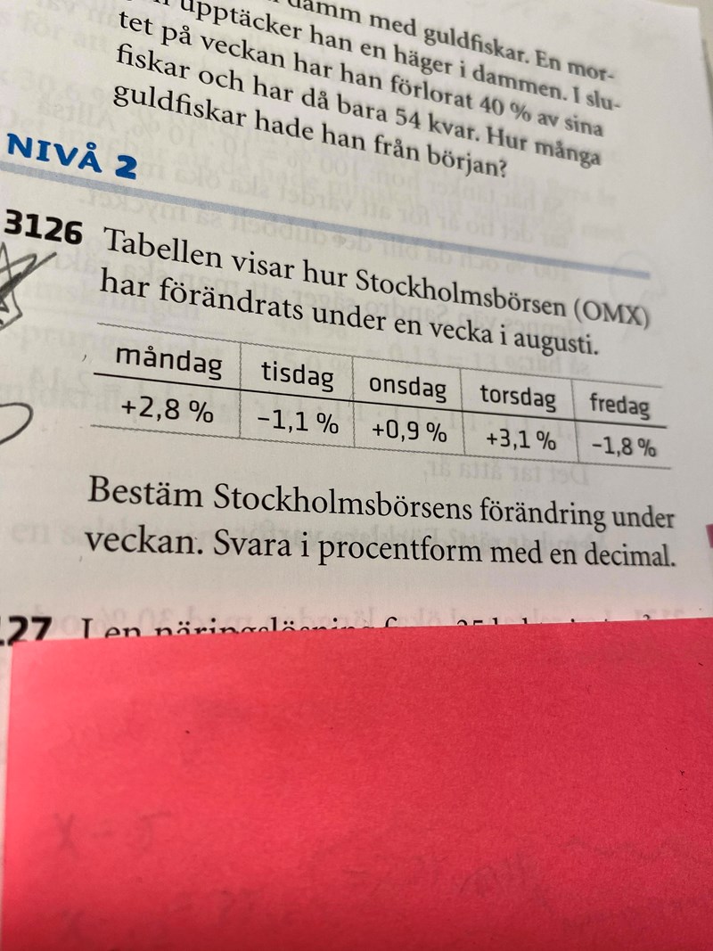 Jag tror de menar att du ska räkna ut hur mycket börsen har gått upp eller ner sammanlagt. Dvs. efter fredag jämfört med i början på måndag.