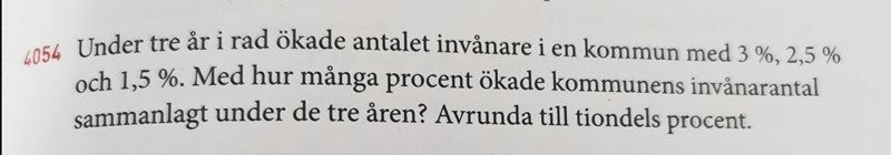 Din multiplikation är helt rätt. Om du har förändringsfaktorn 1,07158625, hur många procents ökning motsvarar det? Avrunda till tiondels procent, som det står i uppgiften.