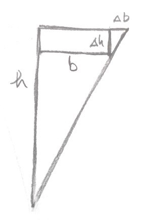 Macilaci skrev:V är helt ointressant i detta fall. De här två prisman har samma dV/dh, för de har samma basyta (b*l).