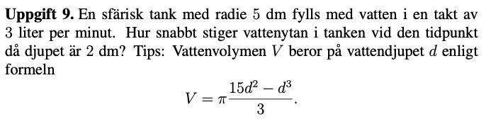 Men tanken kan vara liggande. I annat fall skulle dV/dd vara konstant..
