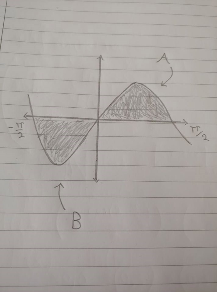 När jag läser denna integral så tolkar jag den som arean av A + arean av B, se bilden