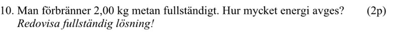 1. Skriv upp reaktionsformeln. (CH4+O2–>CO2+2H2O)