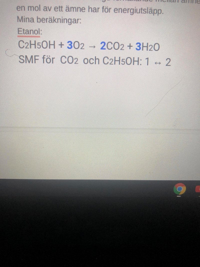 Jag beräknade alltså hur mycket koldioxid som bildas vid 1 mol förbränning av varsit ämne och fick detta resultat.