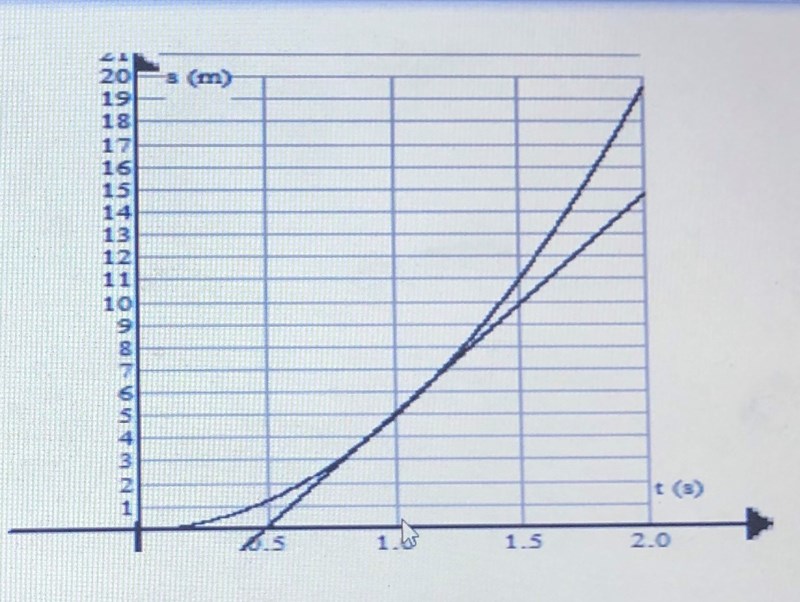 Observera att det i vilket fall inte blir helt korrekt för om du ser på t=2 är s inte 20. Men så är det när man läser av grafer ...