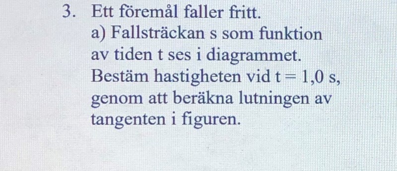 Föremål faller fritt. Bestäm hastigheten genom lutningen
