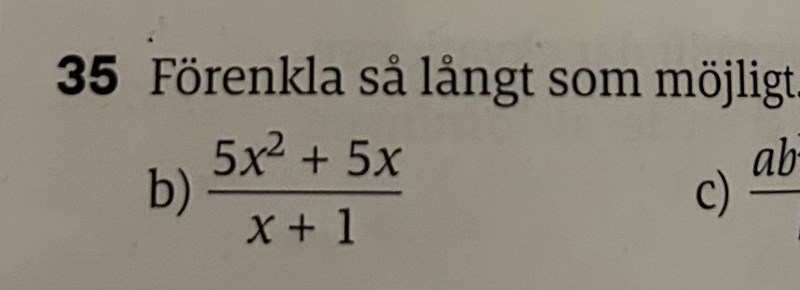 Först så kan du faktorisera ut 5x ur både täljaren och nämnaren