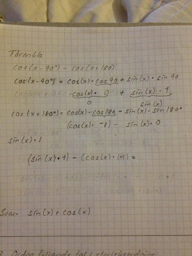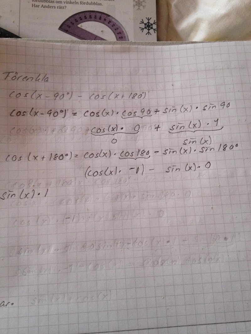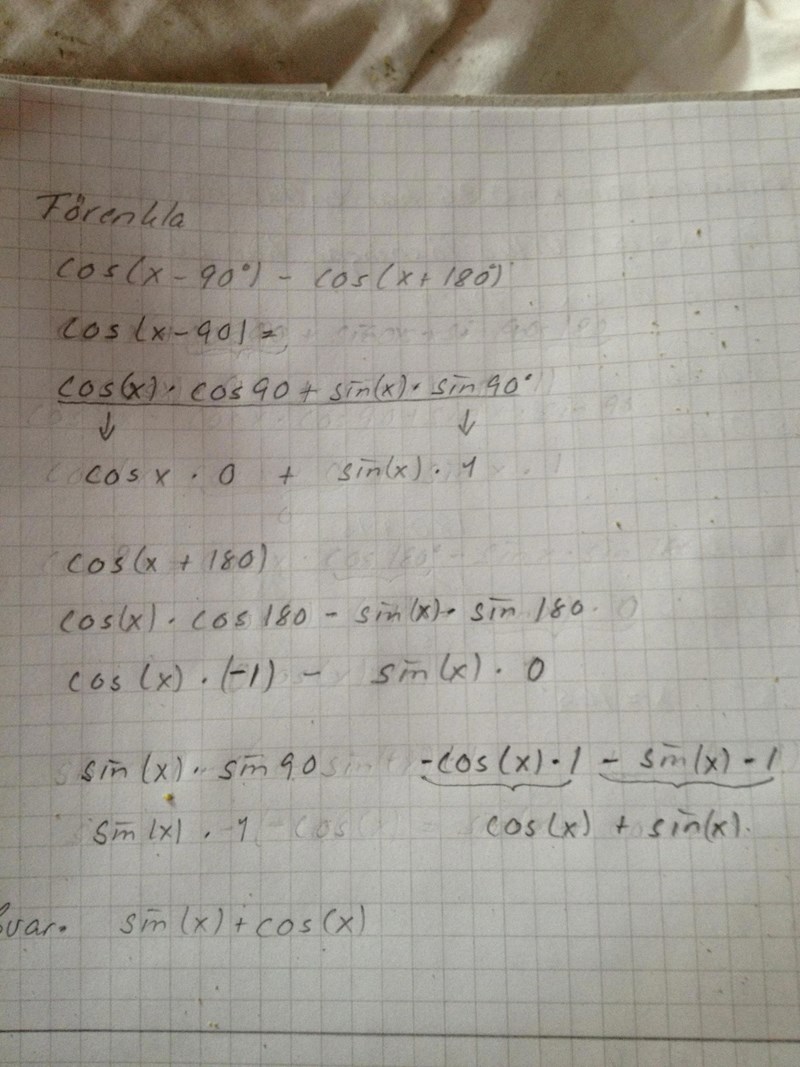 Päivi skrev :cos ( x - 90)= cos (x) - cos 90