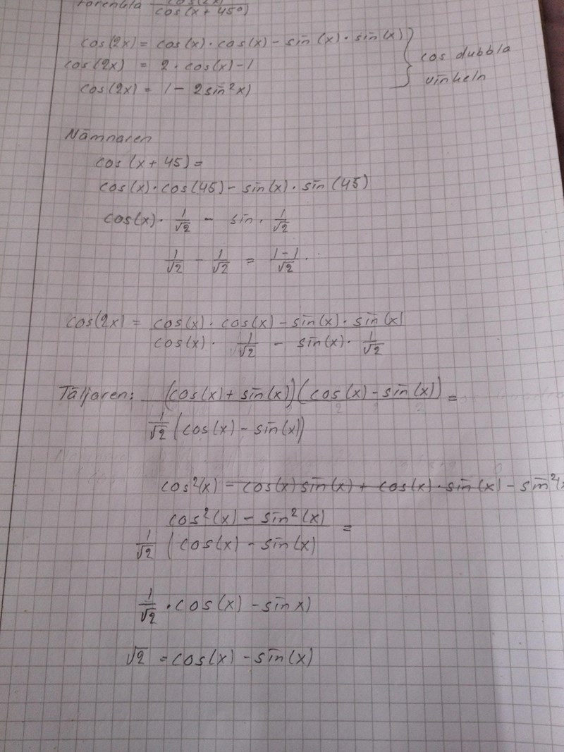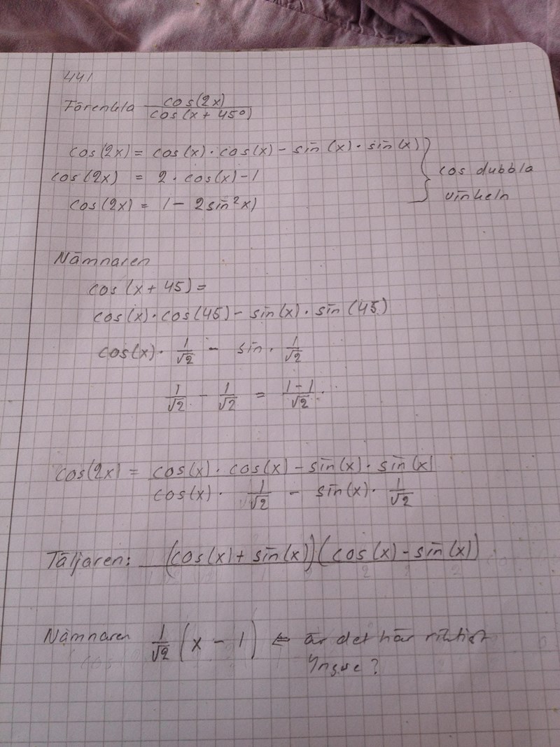 Det betyder att vi måste hantera fallet att uttrycket cos(x) - sin(x) = 0. Om det är så så är uttrycket odefinierat eftersom vi hamnar i en "division med noll"-situation.