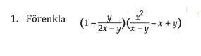 Har kommit så långt att jag förenklat vänstra parentesen till (x-2y)/x-y och den högra till (2xy-y^2/x-y). För det första har jag förenklat rätt och för det andra multiplicerar jag bara ihop täljarna och sen är färdig eller vart ska jag fortsätta?