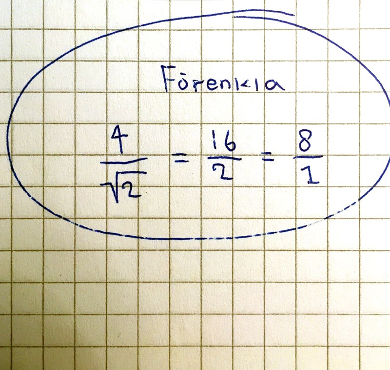 Börja om från . Det krångligaste är att du har ett irrationellt tal i nämnaren, eller hur?! Vad skall du förlänga bråket med för att få en rationell nämnare?