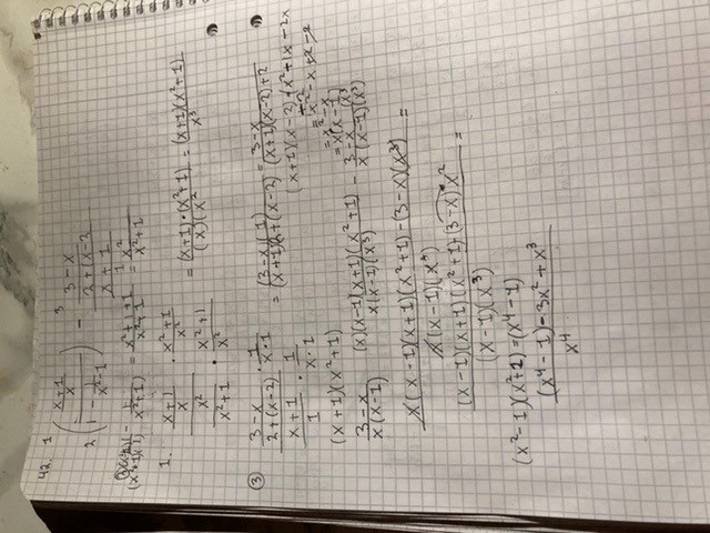 I (3) står det (x+1)(2+(x-2) i nämnaren och där fattas det en parentes så det ska vara (x+1)(2+(x-2)) och sen står det (x+1)(x-2)+2, vilket inte stämmer. Det ska vara (x+1)x.