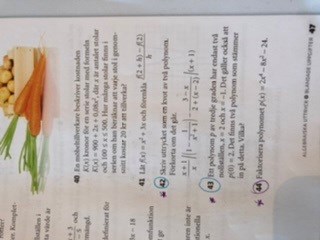 för att du ska få ngt svar är det nödvändigt att du vrider bilderna så de blir lättare att läsa och att du tar en ny bild av uppgiftstexten, den nuvarande är oskarp och går inte att tyda.