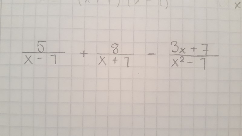 Det ser ut som om du kan använda konjugatregeln på de två första nämnarna och då blir alla tre nämnarna lika och du kan addera och subtrahera täljarna med varandra.