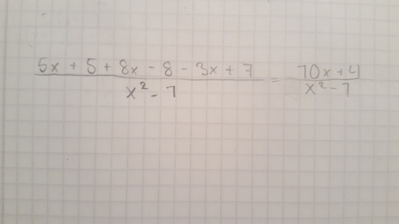 Du har bara gjort ett litet fel. Eftersom sista termen har minus framför så blir det -7 istället.