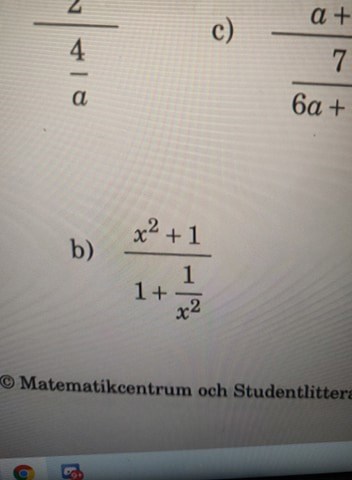 Skriv om 1+1x21+\frac{1}{x^2} så att det blir ett bråk.