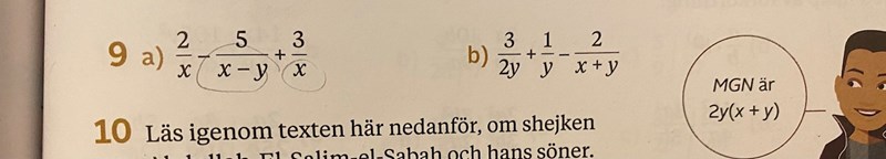 Det räcker att göra om båda nämnarna till x(x-y). Vet du hur du skall göra detta?