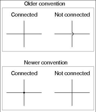 Det finns olika standarder för hur man ritar ett kopplingsschema. När två ledningar korsar varandra, är de då förbundna med varandra eller inte? Jag brukar rita en grov punkt över korsningen för att det inte ska missuppfattas. Ditt schema kan missuppfattas.