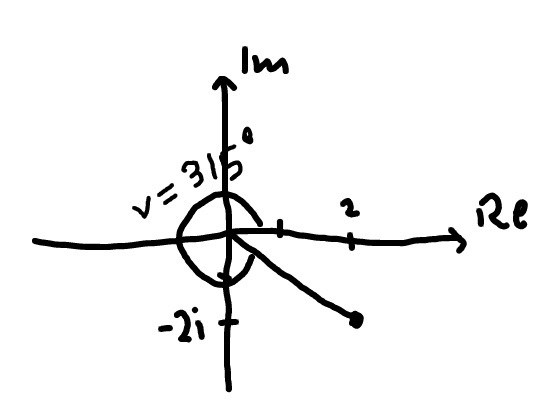 Det betyder att komplexa talet är, i det komplexa talplanet, i fjärde kvadrant och då är ju så klart argumentet v=315 grader, och inte 135 grader.