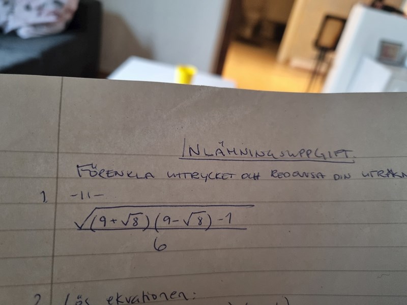 Om du använder konjugatregeln så motsvaras a av 9 och b av . Hur blir det då?